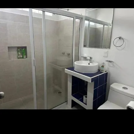 Cozy Apartments In Puerto Morelos provides guests with a terrace complete with a sofa and a writing table, and conveniences such as an air conditioner. A flat-screen TV with satellite channels make up the in-room media amenities. Featuring a separate toilet, a bath, and a shower, a bathroom provides a hairdryer and towels.